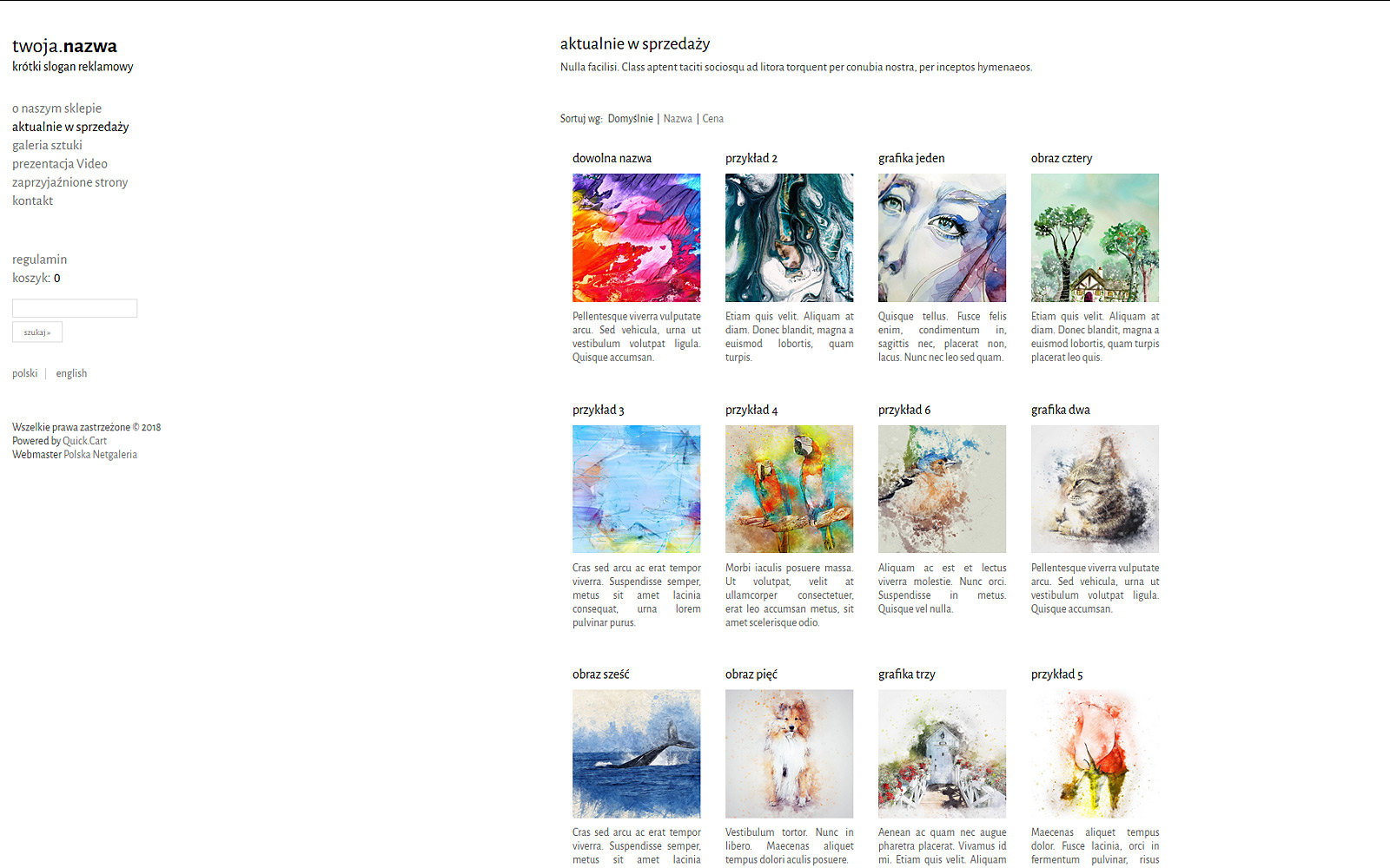 Przykład gotowego szablonu sklepu internetowego -