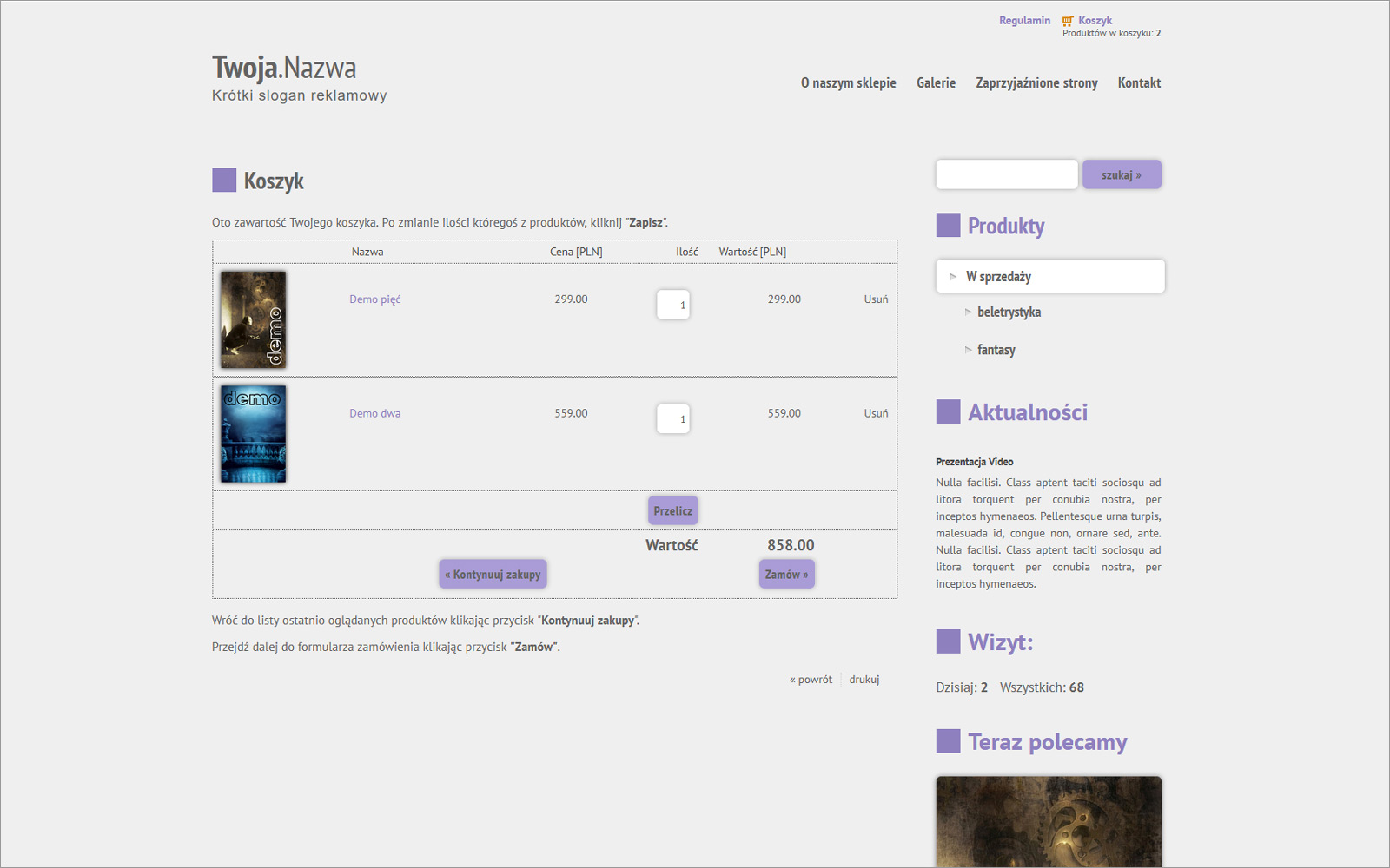 Przykład gotowego szablonu sklepu internetowego -