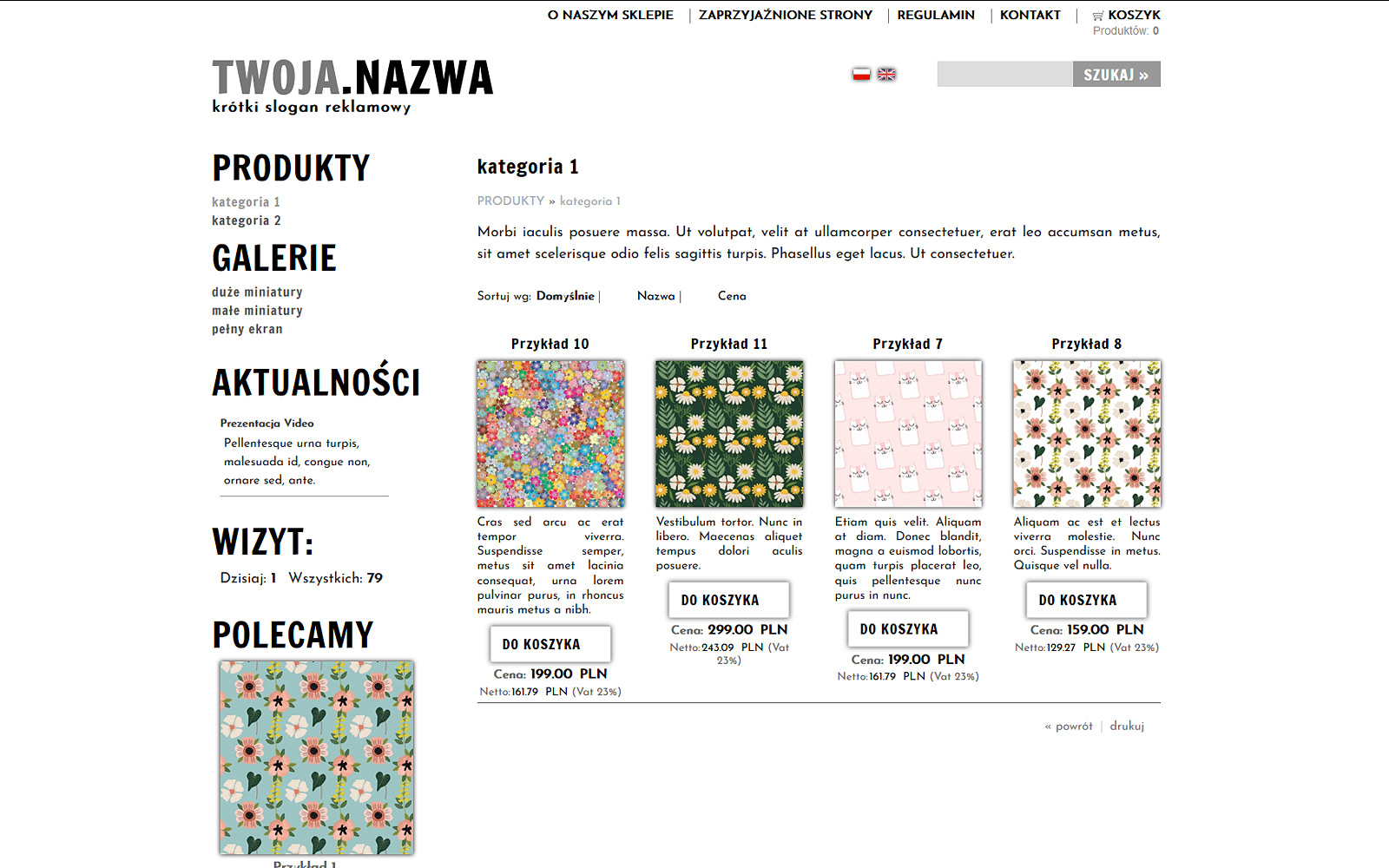 Przykład gotowego szablonu sklepu internetowego -